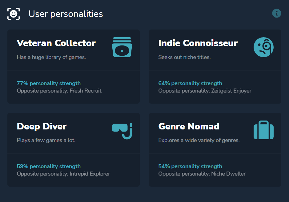 What’s also interesting to see is their breakdown of user personalities for each game. For example, these are the user personalities that are playing Starfield right now.